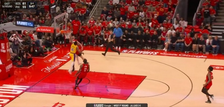 火箭双人快攻申京欲霸王硬上弓 被斯玛特钉板了 但伊森补篮命中